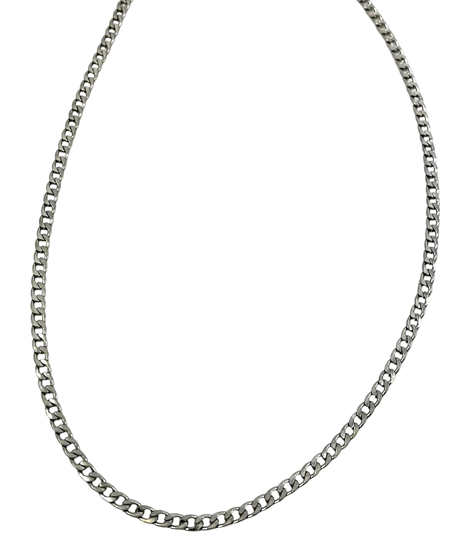 Cadena en acabado plateado de diseño fino y minimalista. Su estilo atemporal la convierte en un accesorio imprescindible, perfecto para llevar sola o acompañada de otros colgantes. Ligera, resistente y cómoda, es ideal tanto para el uso diario como para ocasiones especiales.