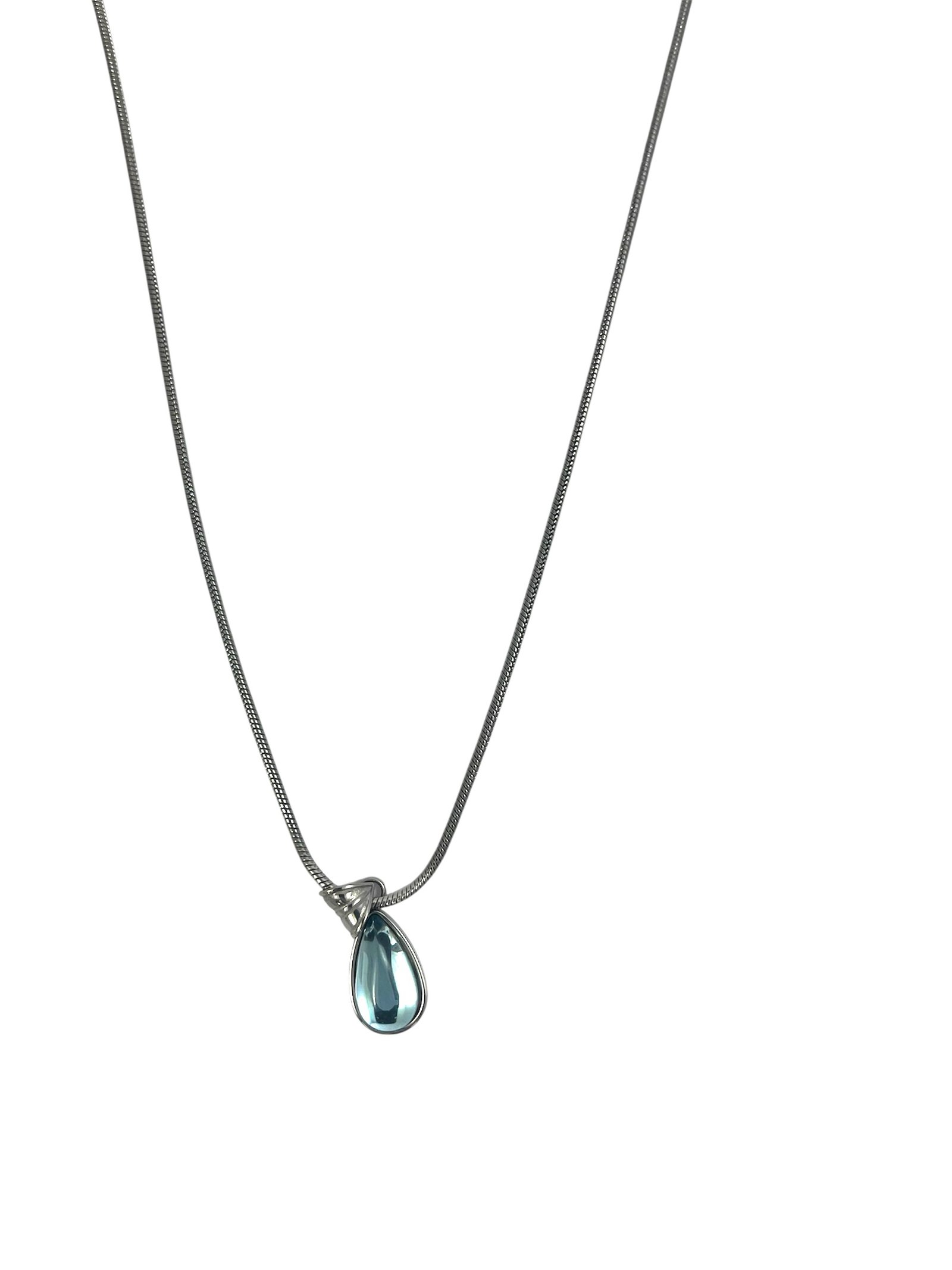 Collar plateado con colgante en forma de lágrima azul. Elegante, minimalista y perfecto para cualquier ocasión.